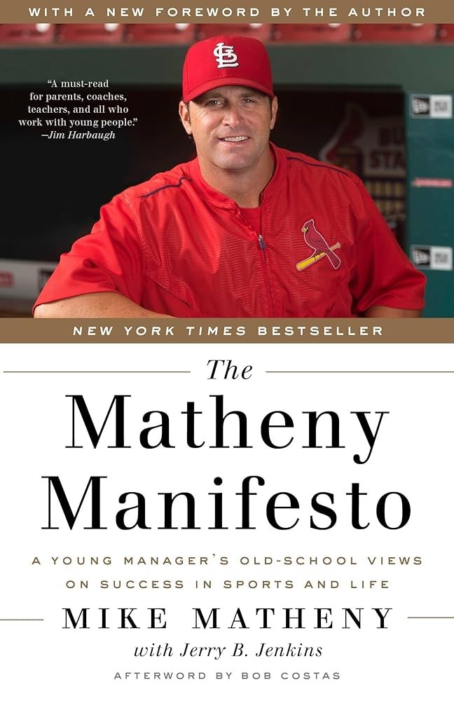 The Matheny Manifesto: A Young Manager's Old-School Views on Success in Sports and Life is a 2015 book by Mike Matheny and Jerry B. Jenkins that expands on Matheny's viral letter to parents about youth sports. The book offers an "old-school" perspective on sports and life, focusing on principles like leadership, teamwork, character, faith, and humility, and provides practical advice for parents, coaches, and athletes to foster a more positive and principled approach to competition and life.